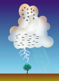 One kind of rain cloud is the cumulonimbus cloud. Meteorologists have studied how cumulonimbus clouds are formed and how they produce rain, hail, and lightning. They have found that cumulonimbus clouds go through the following steps to produce rain: 1) The clouds are pushed by the wind: