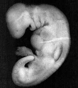The third meaning of the word alaqah is “blood clot.” We find that the external appearance of the embryo and its sacs during the alaqah stage is similar to that of a blood clot. This is due to the presence of relatively large amounts of blood present in the embryo during this stage4 (see figure 4). Also during this stage, the blood in the embryo does not circulate until the end of the third week.5 Thus, the embryo at this stage is like a clot of blood. So the three meanings of the word alaqah correspond accurately to the descriptions of the embryo at the alaqah stage. The next stage mentioned in the verse is the mudghah stage. The Arabic word mudghah means “chewed substance.” If one were to take a piece of gum and chew it in his or her mouth and then compare it with an embryo at the mudghah stage, we would conclude that the embryo at the mudghah stage acquires the appearance of a chewed substance. This is because of the somites at the back of the embryo that “somewhat resemble teethmarks in a chewed substance.”6 (see figures 5 and 6). How could Muhammad Professor Emeritus Keith L. Moore8 is one of the world’s most prominent scientists in the fields of anatomy and embryology and is the author of the book entitled The Developing Human, which has been translated into eight languages. This book is a scientific reference work and was chosen by a special committee in the United States as the best book authored by one person. Dr. Keith Moore is Professor Emeritus of Anatomy and Cell Biology at the University of Toronto, Toronto, Canada. There, he was Associate Dean of Basic Sciences at the Faculty of Medicine and for 8 years was the Chairman of the Department of Anatomy. In 1984, he received the most distinguished award presented in the field of anatomy in Canada, the J.C.B. Grant Award from the Canadian Association of Anatomists. He has directed many international associations, such as the Canadian and American Association of Anatomists and the Council of the Union of Biological Sciences. In 1981, during the Seventh Medical Conference in Dammam, Saudi Arabia, Professor Moore said: “It has been a great pleasure for me to help clarify statements in the Quran about human development. It is clear to me that these statements must have come to Muhammad from God, because almost all of this knowledge was not discovered until many centuries later. This proves to me that Muhammad must have been a messenger of God.”9 Consequently, Professor Moore was asked the following question: “Does this mean that you believe that the Quran is the word of God?” He replied: “I find no difficulty in accepting this.”10 During one conference, Professor Moore stated: “….Because the staging of human embryos is complex, owing to the continuous process of change during development, it is proposed that a new system of classification could be developed using the terms mentioned in the Quran and Sunnah (what Muhammad _____________________________